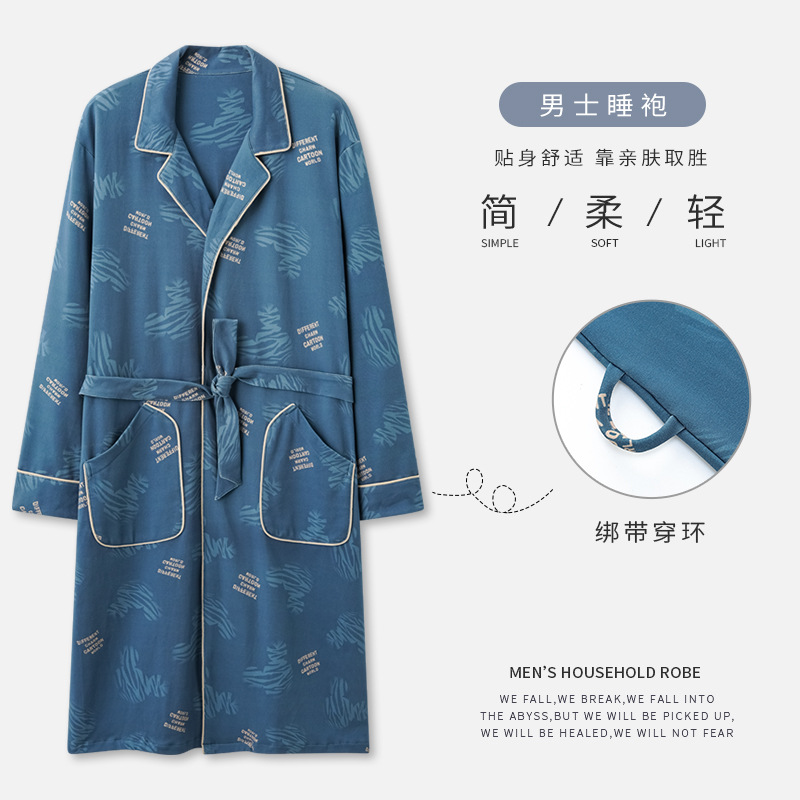 寝衣男長袖バスローブ綿質青中年ストラップ男性春秋金2025新型浴衣ホテルサウナ部屋