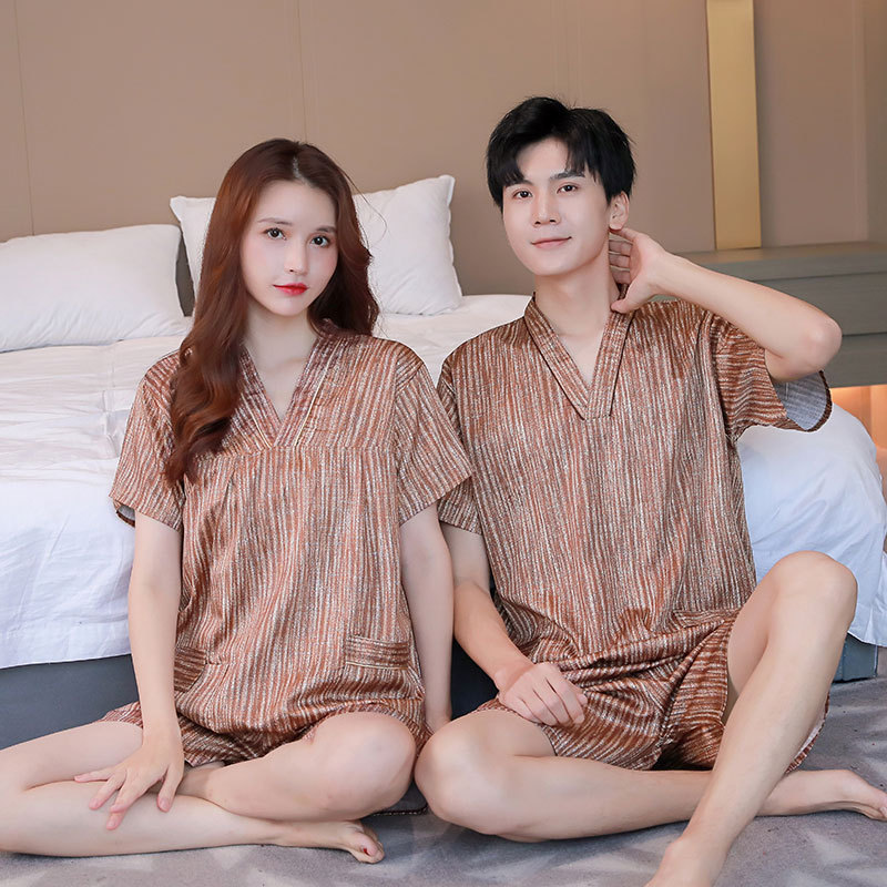 新しいカジュアルな汗蒸し服女性使い捨てバス服男性カップルスーツ大サイズホテルバスローブspaパジャマ卸売り