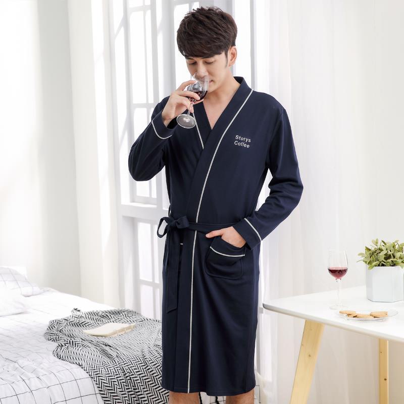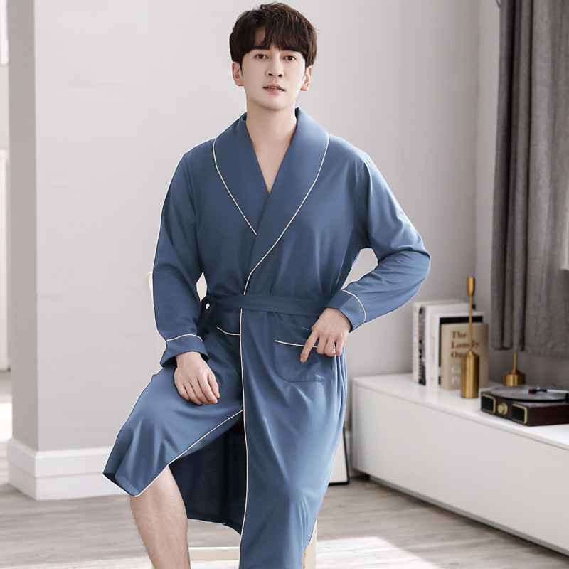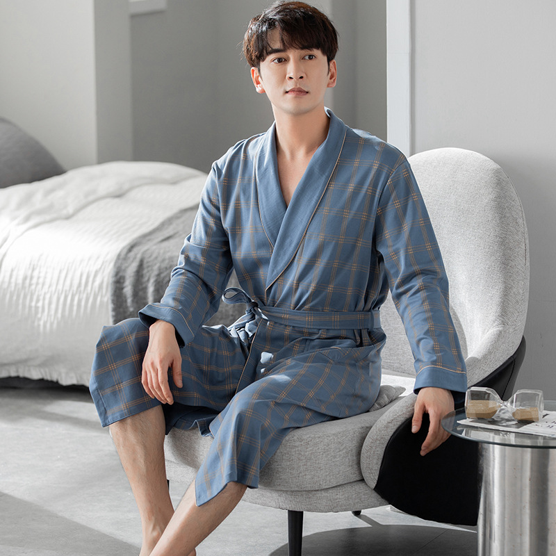 春秋スタイルの男性用パジャマ綿質長袖大サイズの男性用浴衣秋の浴衣男性用夏のロングタイプの朝着パジャマ