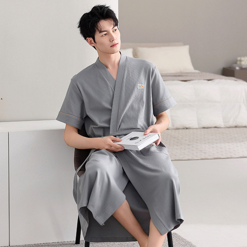夏単層水洗い綿布和風浴衣男の中の長さは寝衣のカーディガンの入浴SPAホテルの美しさを結びます。