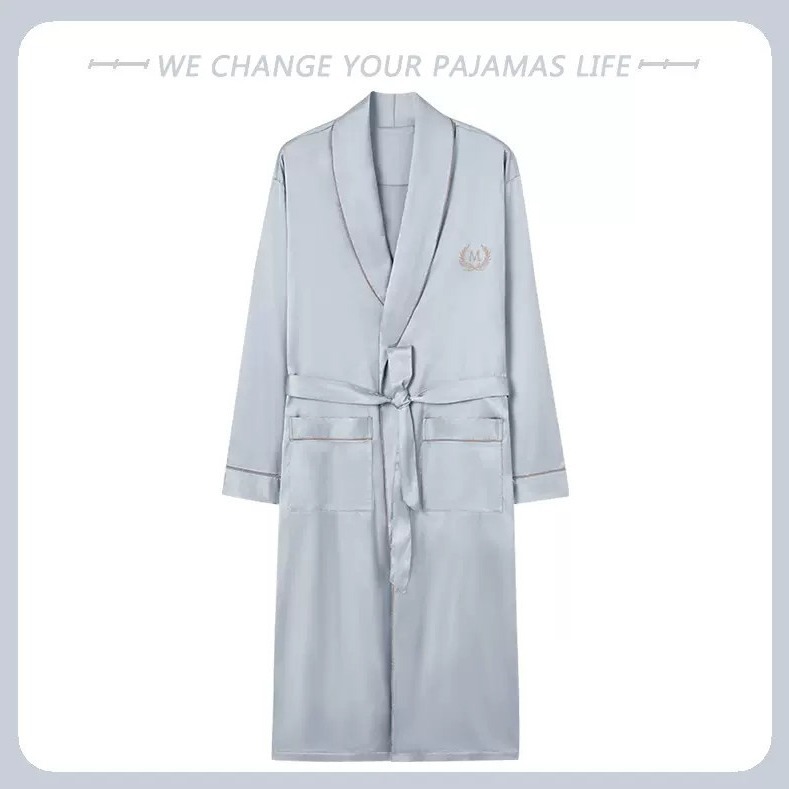 男性の春秋タイプの氷糸の長袖の寝衣の春と秋の薄いタイプの涼しい感じのシルクのパジャマの男性の中の長いタイプの浴衣