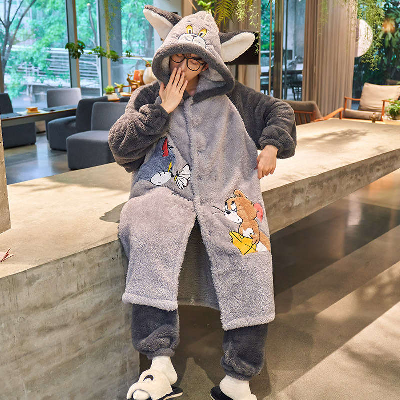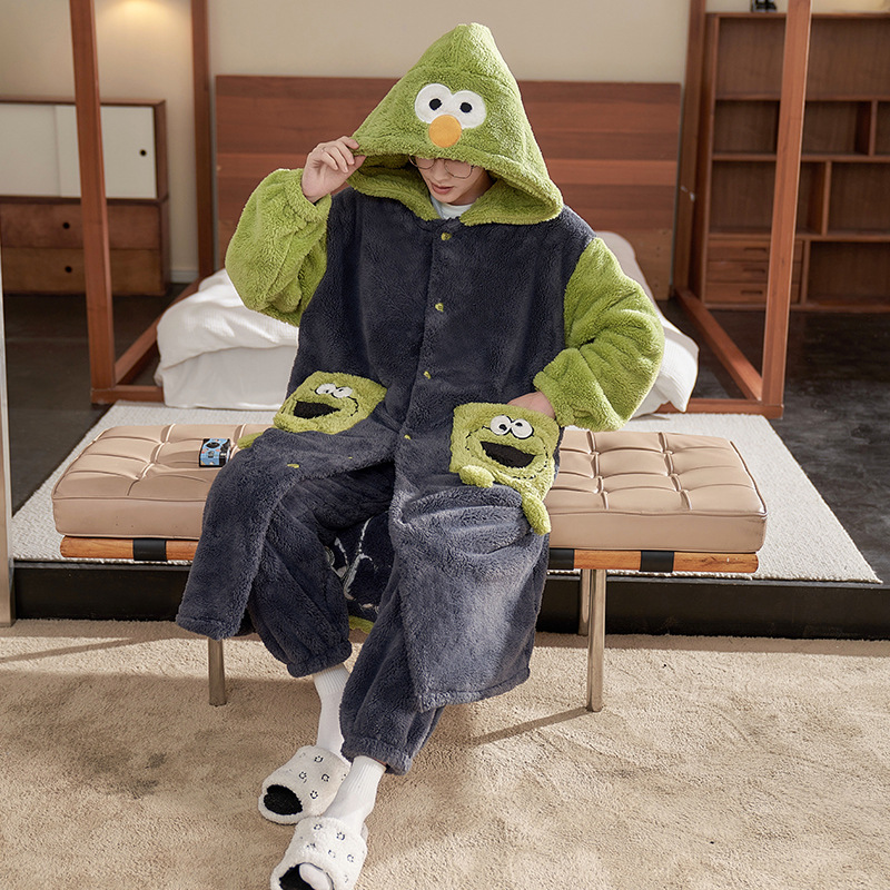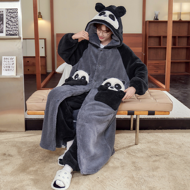 男性用の厚い秋と冬のナイトガウン、背中にプリントされた大きいサイズのフランネルバスローブ、ロングパジャマ、カップルバスローブ、女性用ドレッシングガウン、ホームウェア