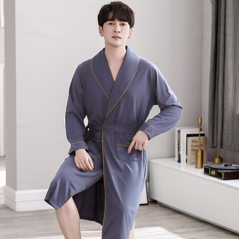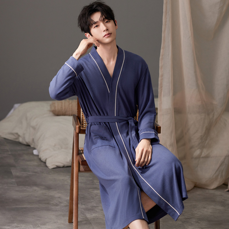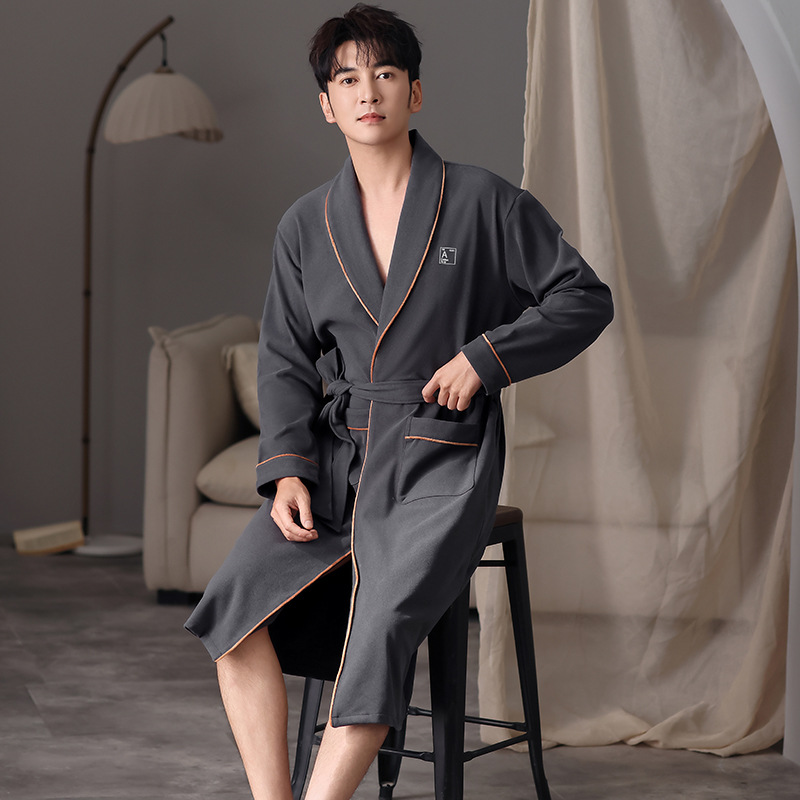 ナイトウェア男性用純綿バスローブ純綿長袖男性用秋冬帯男性用パジャマ春秋モデル2025新作