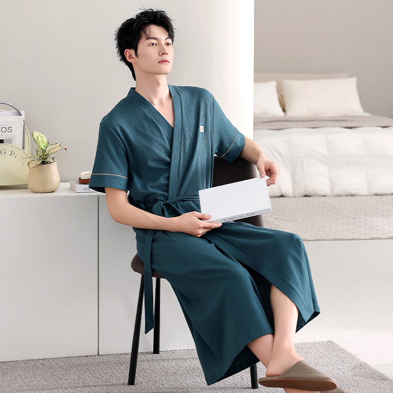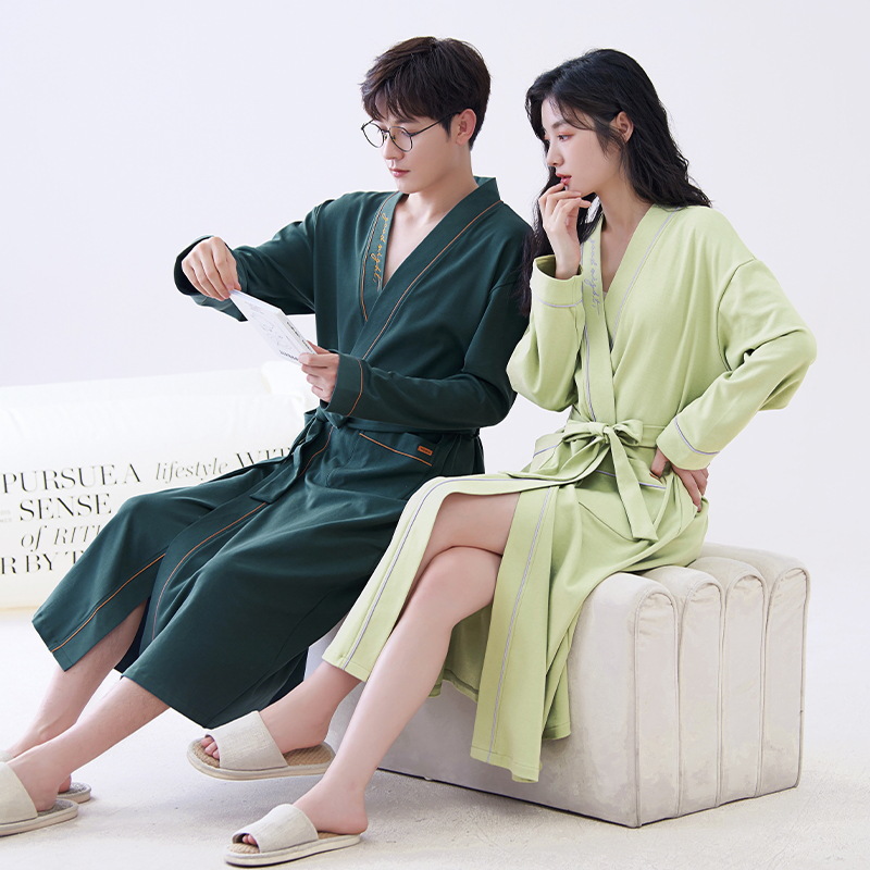 春と秋のカップルのパジャマの女性吸水バスローブの夏の中の長いタイプのパジャマの男性の薄いタイプの浴衣のパジャマの家の服