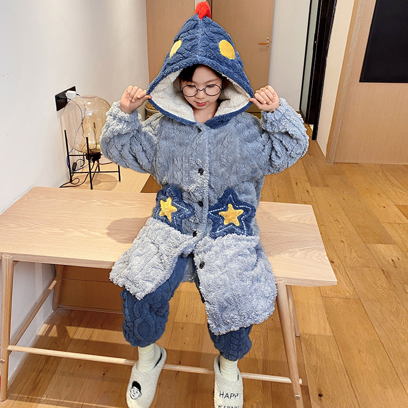 子供用パジャマ男児秋冬のサンゴのベルベットの厚いフランネルの男の子の子供の家の服のパジャマセット