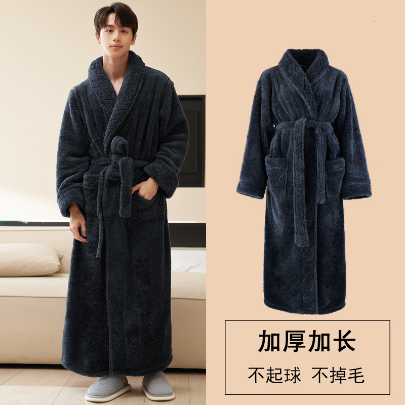 男性用パジャマ、厚みのあるベルベットコーラルベルベットの秋と冬のエクストラロングバスローブ、男性用冬の大きいサイズのフランネルローブ