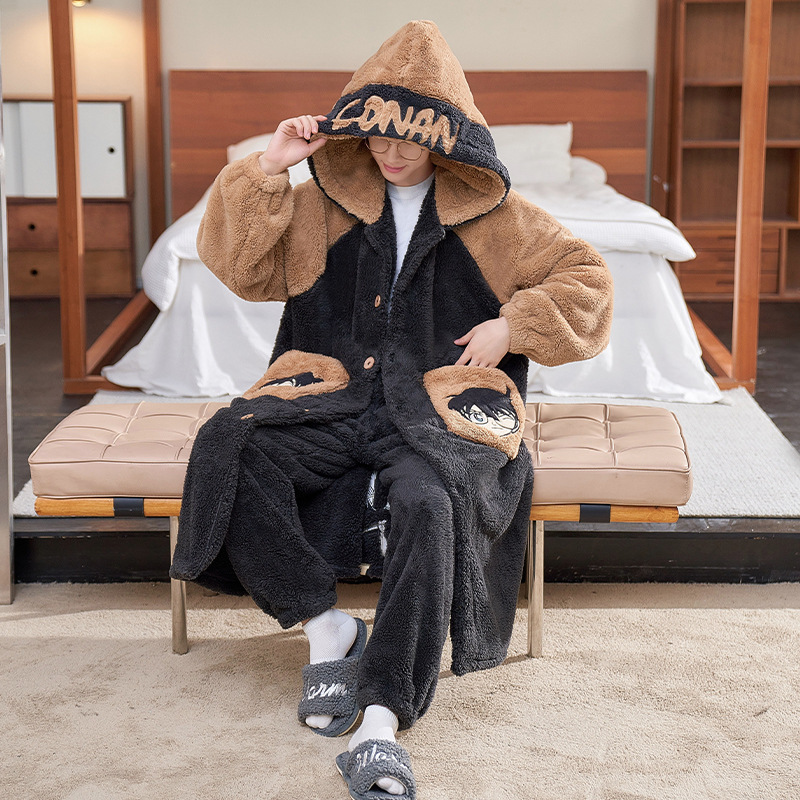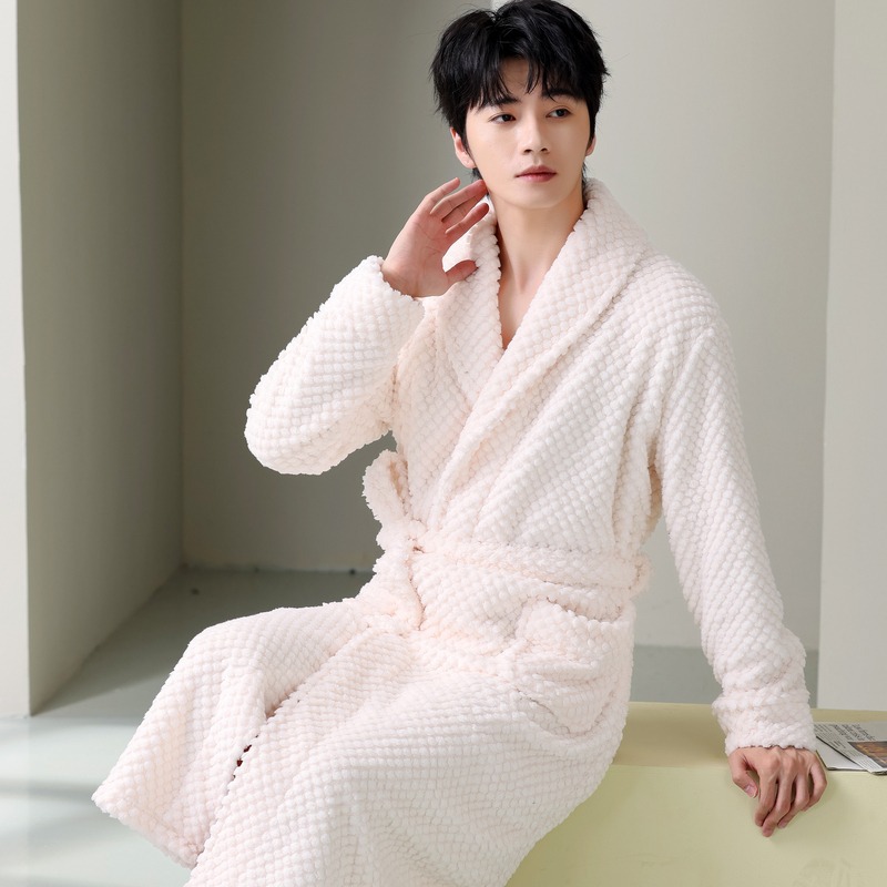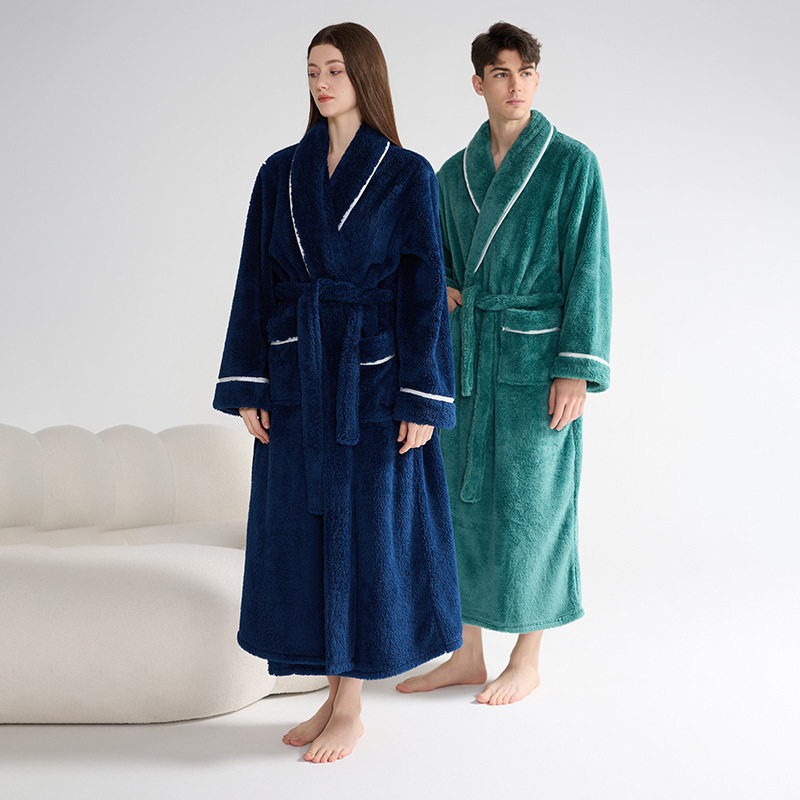 メーカー製 冬用パジャマ ロング丈 コーラルフリース バスローブ メンズ フランネル バスローブ カップル用 浴衣 厚手 長袖