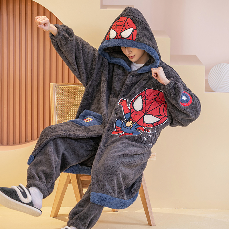 冬のベルベットのパジャマ男性とベルベットの厚い保温フード付きのパジャマ男性の冬のフランネルの保温ホームウェア