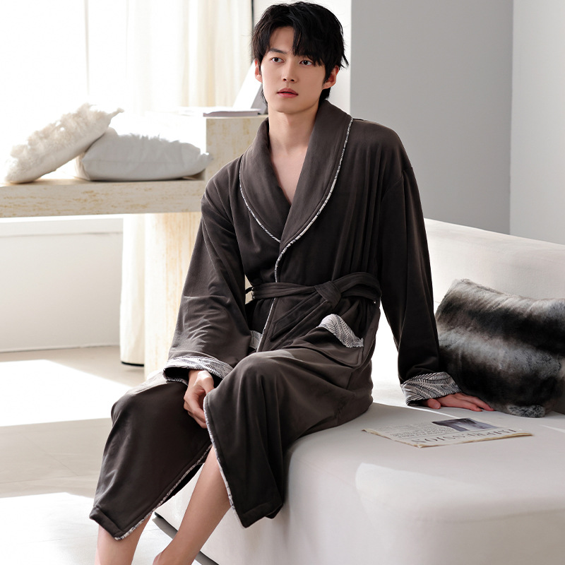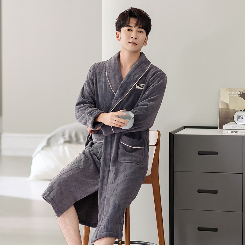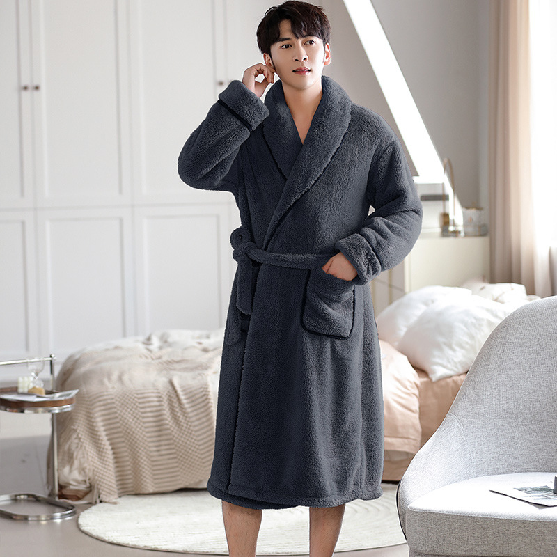 徳絨睡服男性秋冬保温長袖バスローブ薄毛高級感中長タイプホームウェア大サイズセット