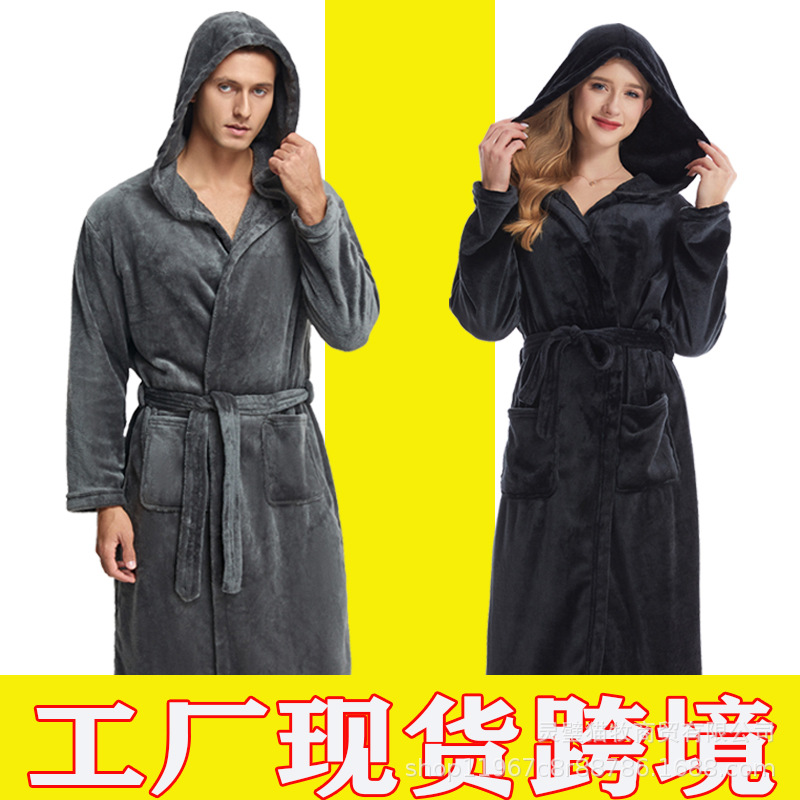 新しいスタイルのナイトガウン、女性用秋冬コーラルベルベット、男性用バスローブ、カップル用パジャマセット、ロング丈バスローブ、厚手冬用