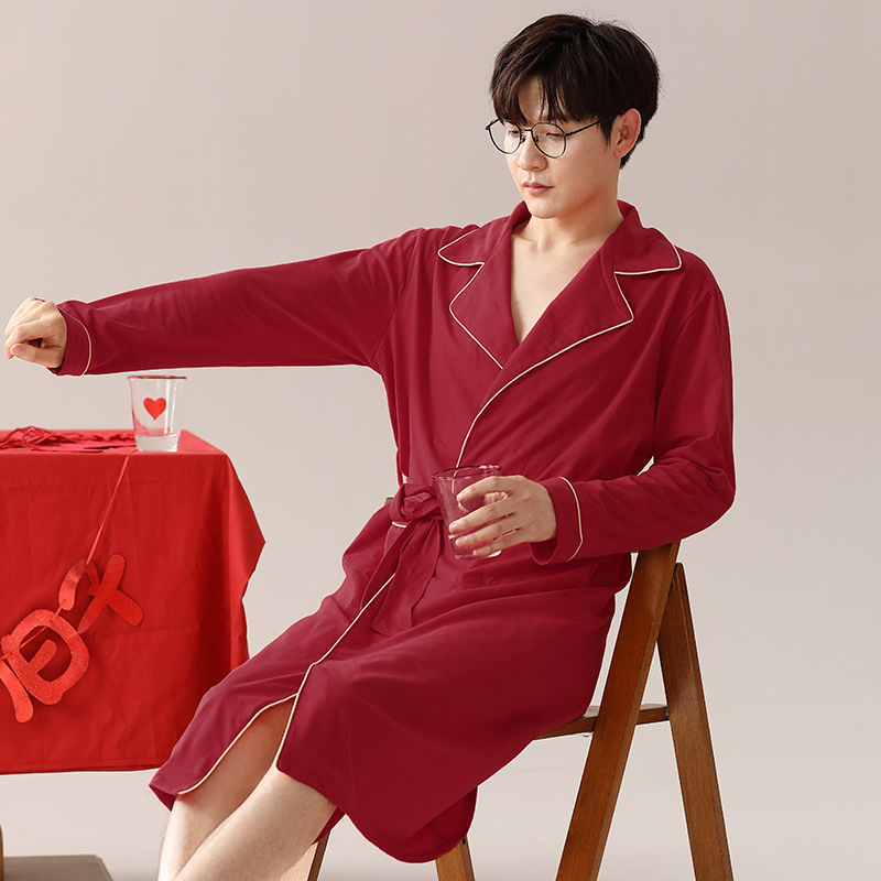 寝衣男春秋綿の長いタイプの男性パジャマ2025秋冬スタイルの赤いお祝いのバスローブ男の家服OV