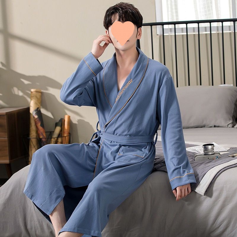 春秋スタイルの男性用パジャマ綿質長袖大サイズ男性用浴衣秋バスローブ一体式ロングタイプ春夏パジャマ