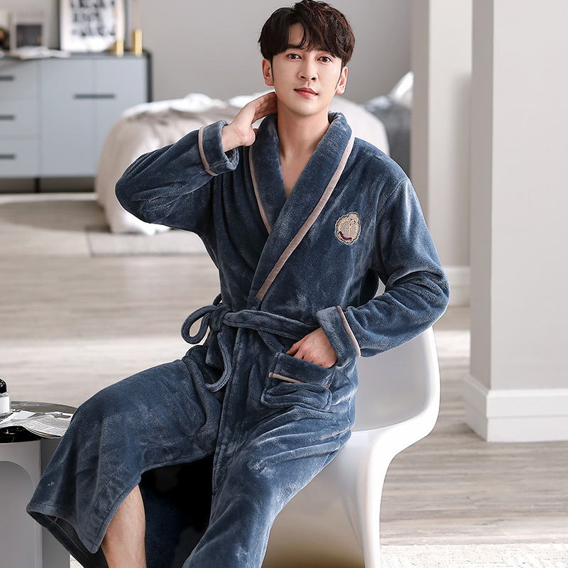 男性用パジャマ、秋冬フランネル厚く長くなったコーラルベルベットパジャマ、冬用ベルベットバスローブ、男性用バスローブメーカー