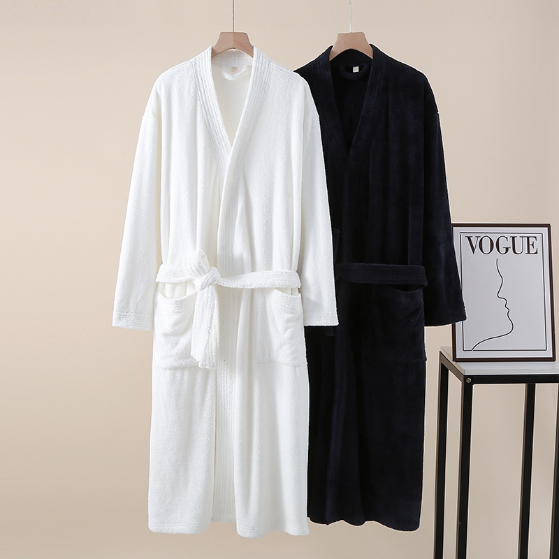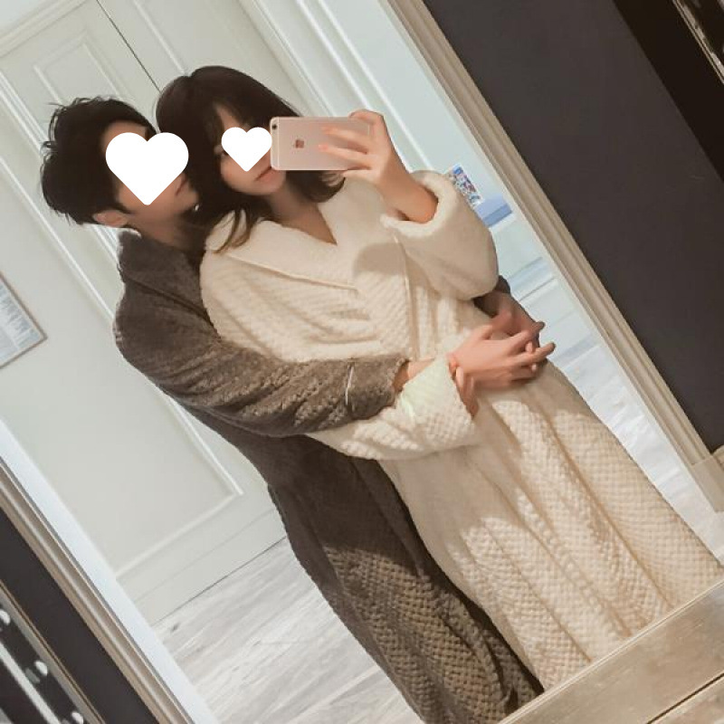 2024海島絨毛カップルの寝衣秋冬の女性のモデルは、ベルベットのベルベットの朝の長さの男性の中の長さのバスローブを厚くした