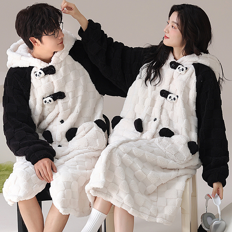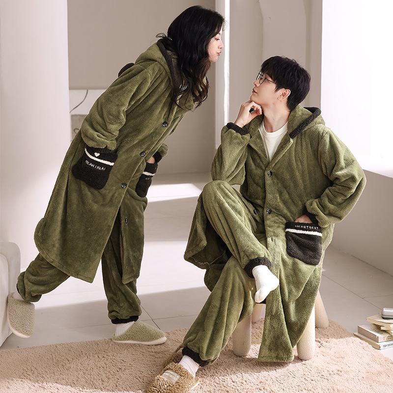 寝衣アリのパジャマ女性カップルのバスローブ秋冬の寝衣ホームウェアの厚いバスローブ男性のパジャマ