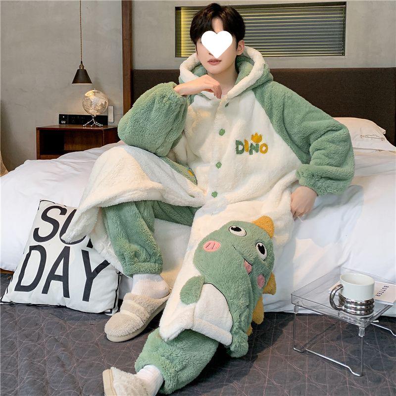 男性パジャマ秋冬お風呂コーラルベルベット服ホテルのバスローブ両面パイル大サイズフランネルパジャマ一体