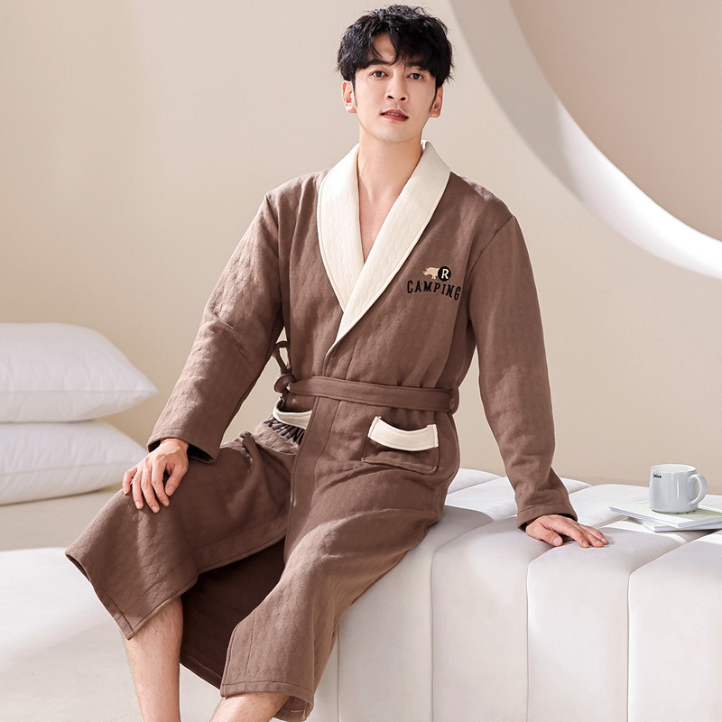 2024年冬の新製品法6535サンドイッチパジャマ男性のロングタイプのゆったりとした保温パジャマセクシーなバスローブ