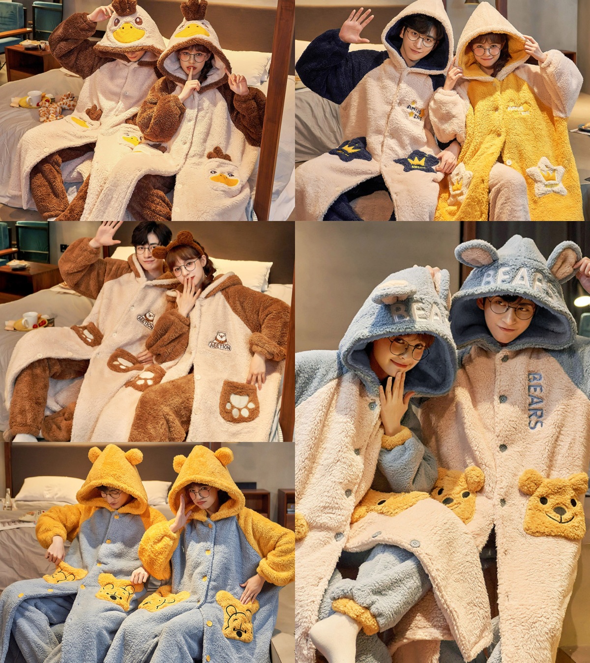 寝衣アリのパジャマ女性カップルのバスローブ秋冬の寝衣ホームウェアの厚いバスローブ男性のパジャマ