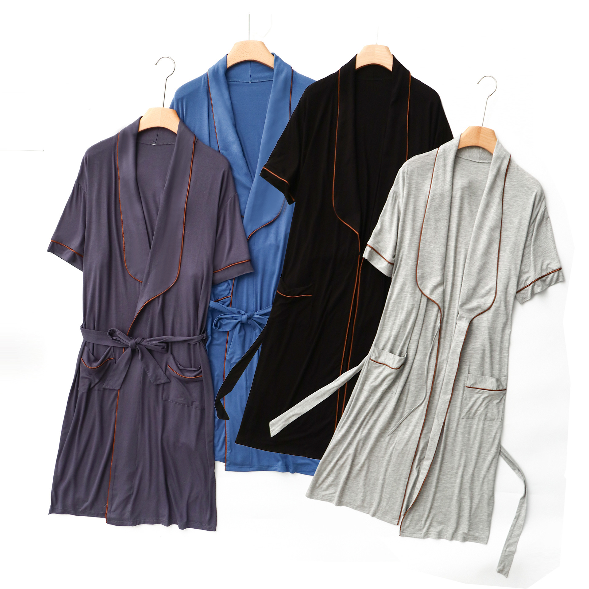 60S両面のモーダル春秋男性の長いタイプのパジャマの薄いタイプのバスローブの家庭のレジャーの長い服は外出することができます。