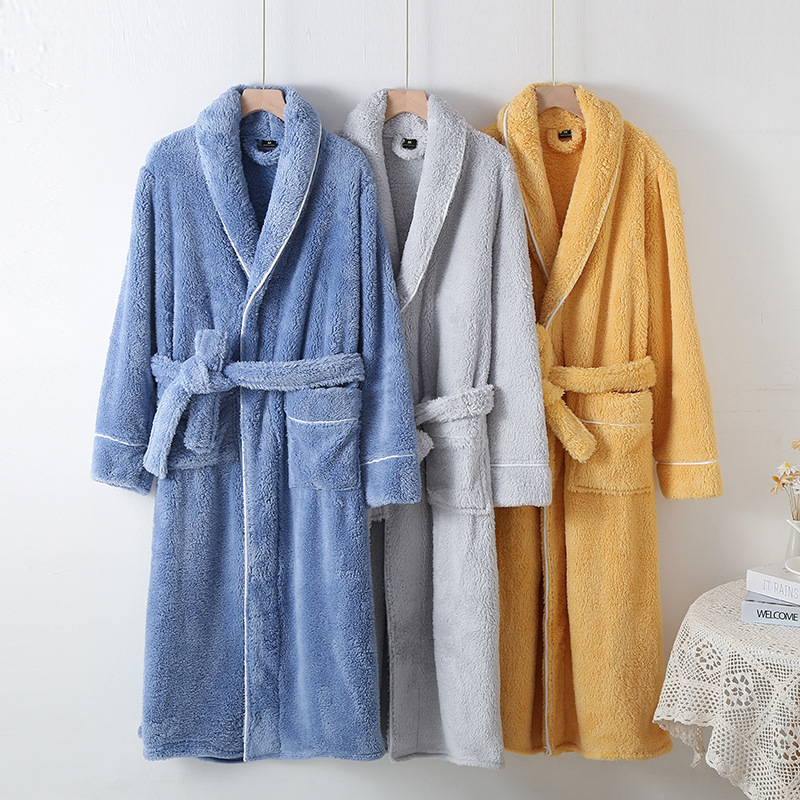 秋冬のカップル向けの怠惰なロングオーストリアンベルベットバスローブ、男性用冬用入浴用暖かいベルベットパジャマ、女性用二重層厚みのあるナイトガウン