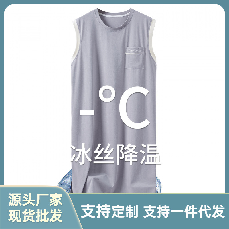 メンズモーダルベストナイトガウン 2025 新しい夏のバスローブパジャマ大きいサイズルーズシルキーナイトガウンは屋外で着用できます