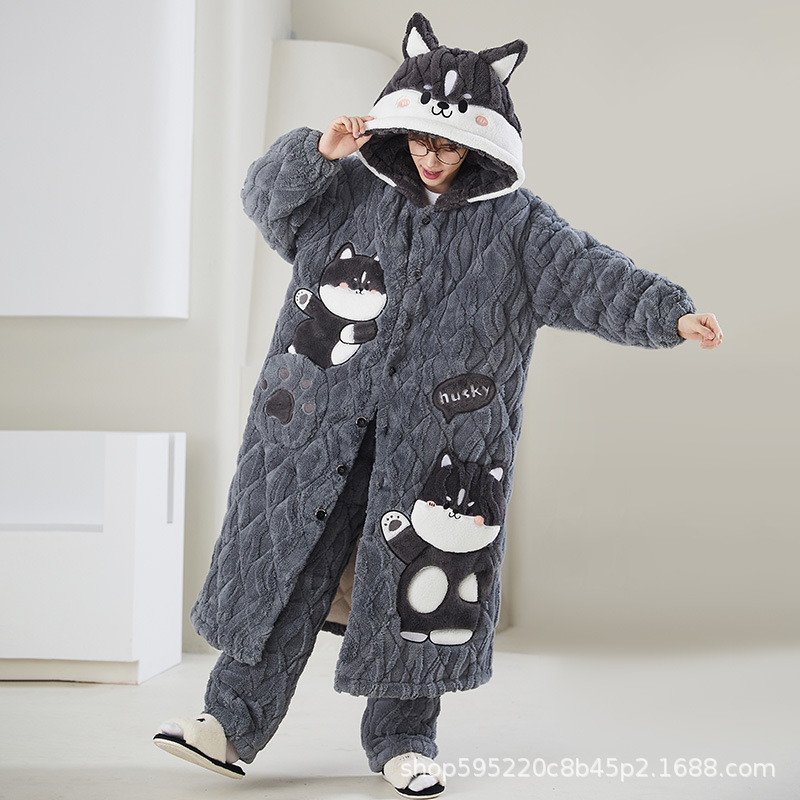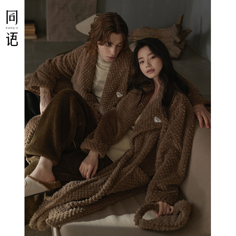 2024カップルのパジャマ女性秋冬のぬいぐるみは保温の長いネット紅風男性の寝衣バスローブを厚くした