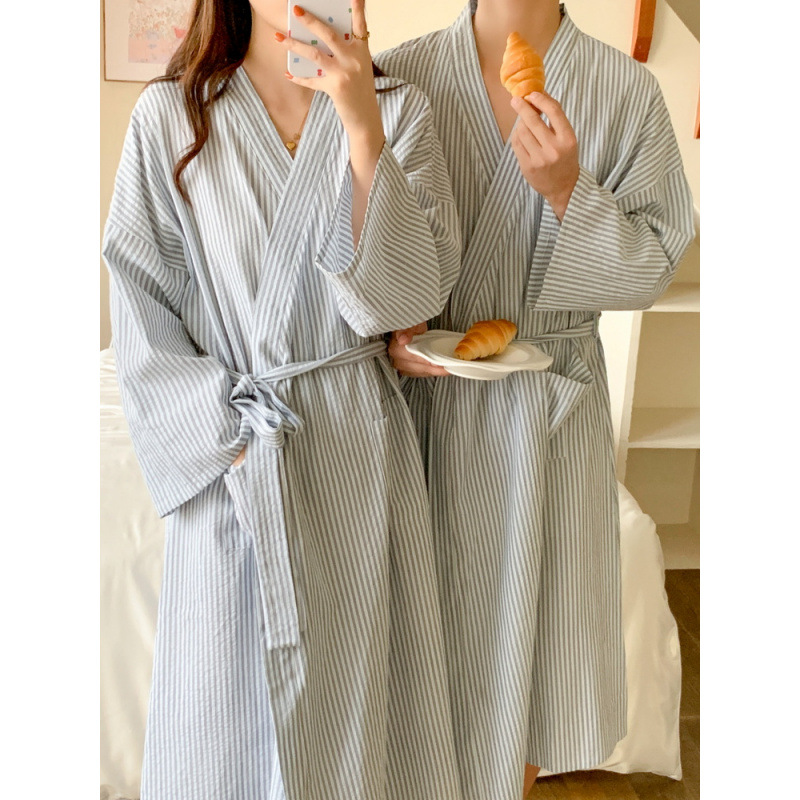 日系純綿男性バスローブ四季純綿プラスサイズロングパジャマ女性浴衣温泉汗蒸しホームウェア