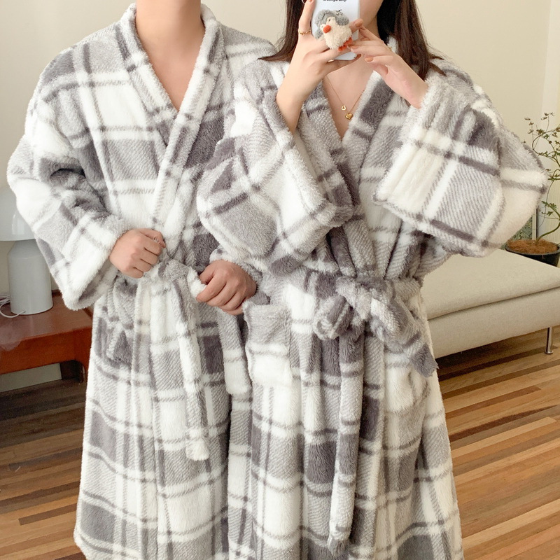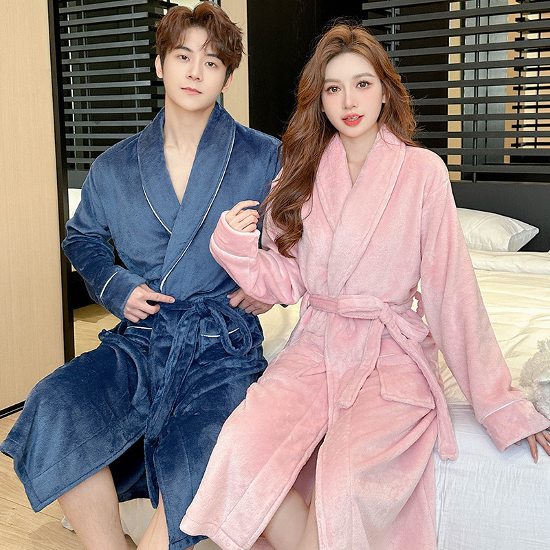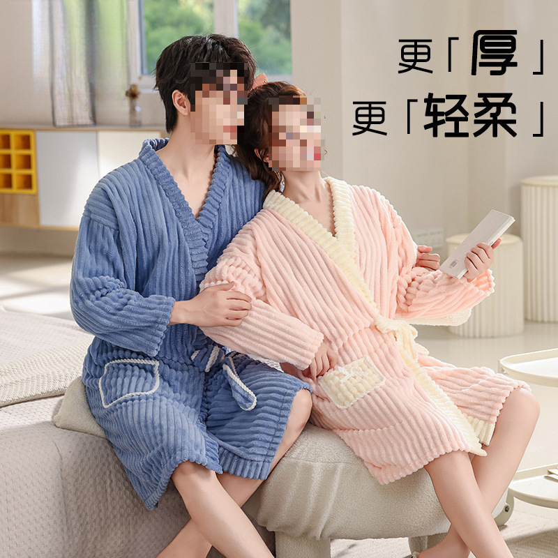 Amazon クロスボーダーフランネルバスローブ女性の秋と冬厚く暖かいナイトガウンコーラルベルベットパジャマ男性のバスローブホーム服