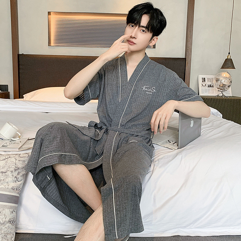 バスローブ男性春夏薄手半袖ロング吸水速乾水泳専用パジャマパジャマホームウェア