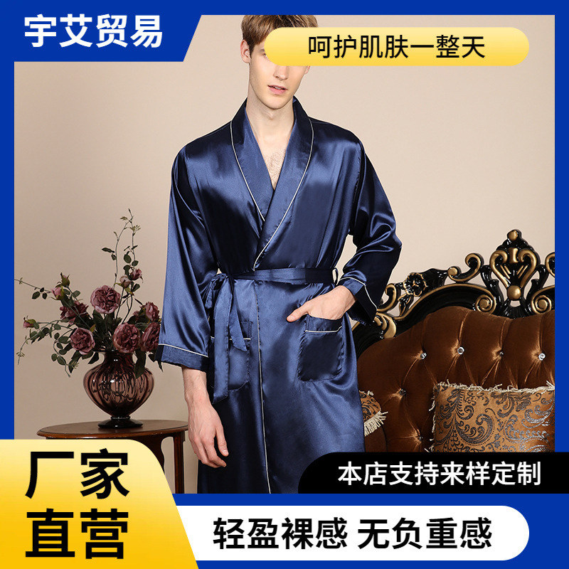 クロスボーダーの男性の夏のワンピースの寝衣の純色のシルクの浴衣の男性式の長袖の薄いサイズの浴衣の88012