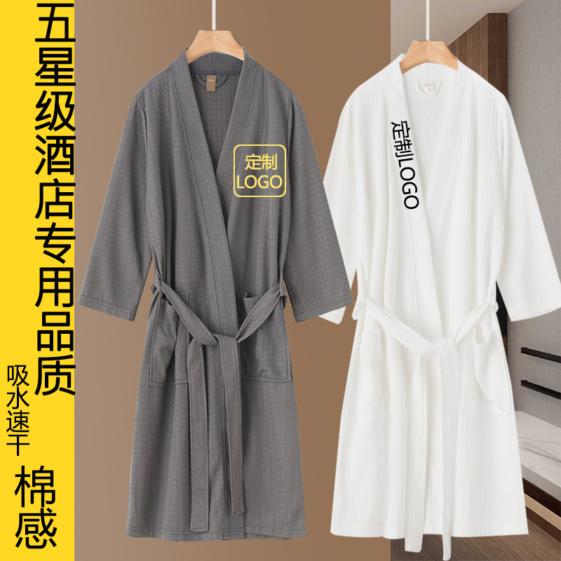 和風着物吸水性ホテル美容室男女兼用四季夏カップル浴衣パジャマワッフルホワイトコットン