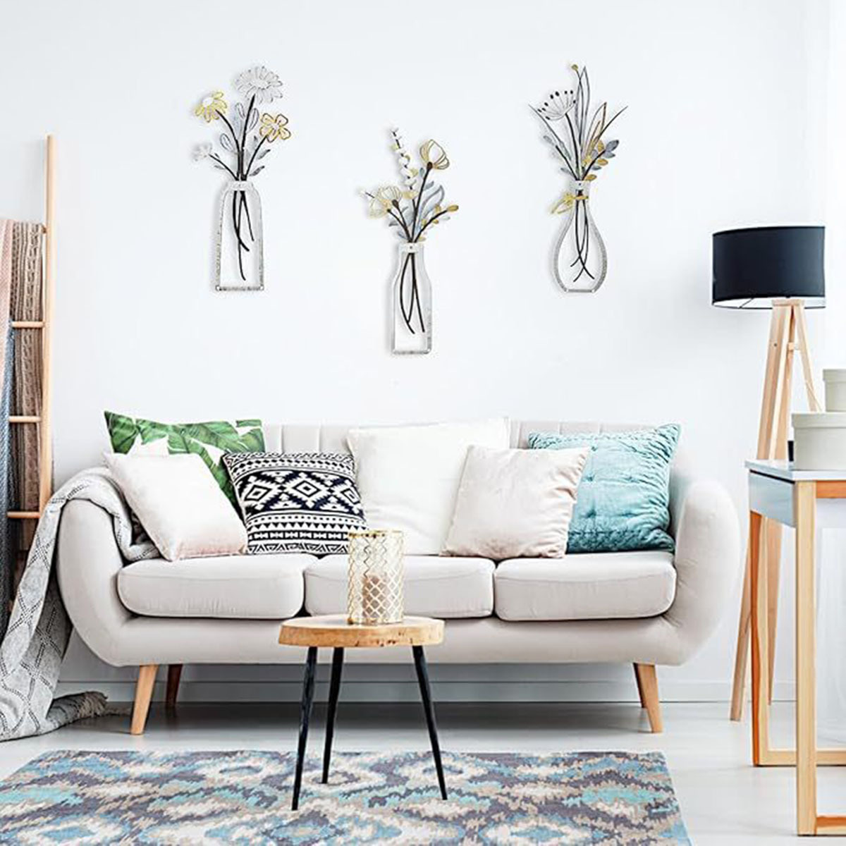 クロスボーダー 3 ピース シンプルな花瓶花フラワー サイン ウォール アート装飾カラー ブラック ミニマリズム