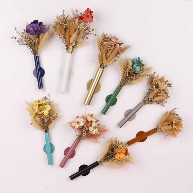 モダンでシンプルな壁掛け花器、リビングの壁に飾るフラワーボトル、北欧風ゴールドの穴あけ不要壁掛け装飾