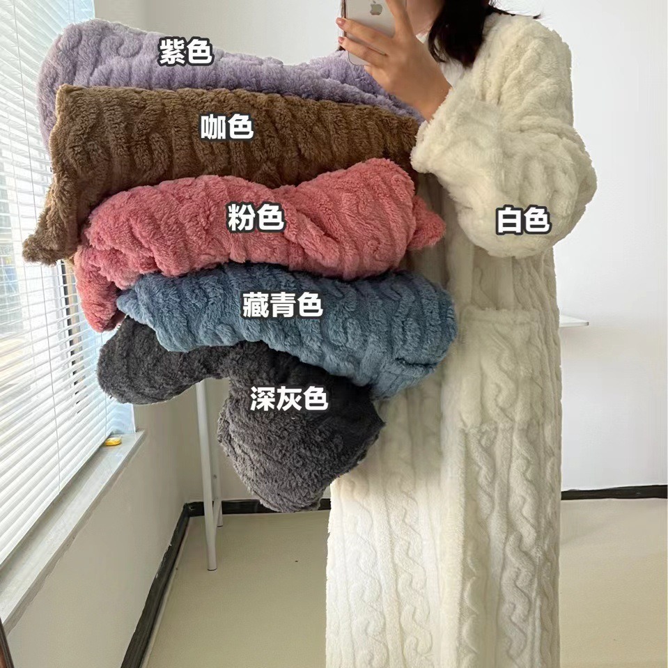 歩く大きな布団サンゴのベルベットのジャカードパジャマ冬のパジャマ保温ルームウェア秋冬保温ロングドレス