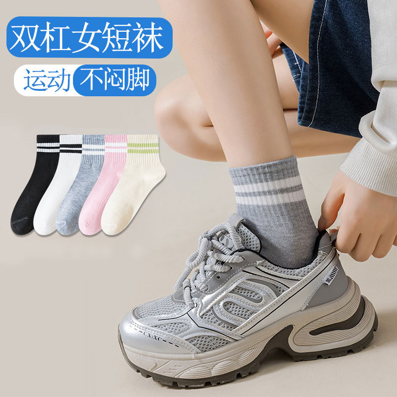 女性用のかわいい日本風スポーツソックス、二本線入りミドル丈ソックス、学生用カジュアル吸汗ソックス、諸暨ソックス、白ソックス