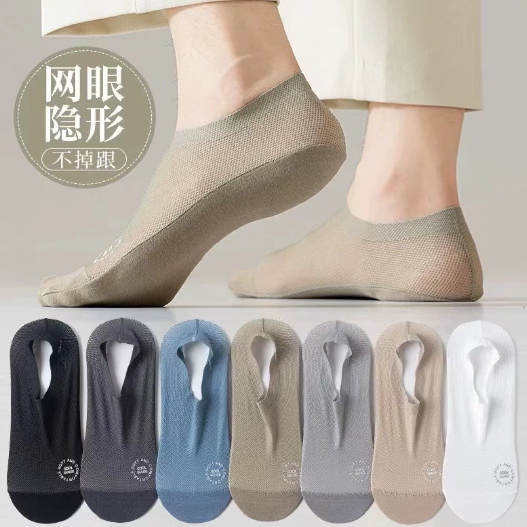 メンズボートソックス 夏用アイスシルク インビジブルソックス 薄手 滑り止め 脱げにくい メッシュ 通気性 吸汗 防臭ソックス 卸売