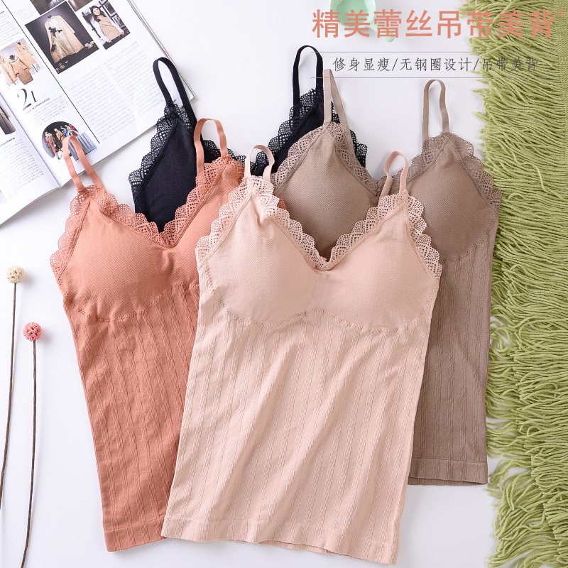モーダル一体式のサスペンダーのベストの女性の胸のパッドの薄いタイプの中に小さいサスペンダーを掛けて外に女性の底のシャツの下着を着ます。