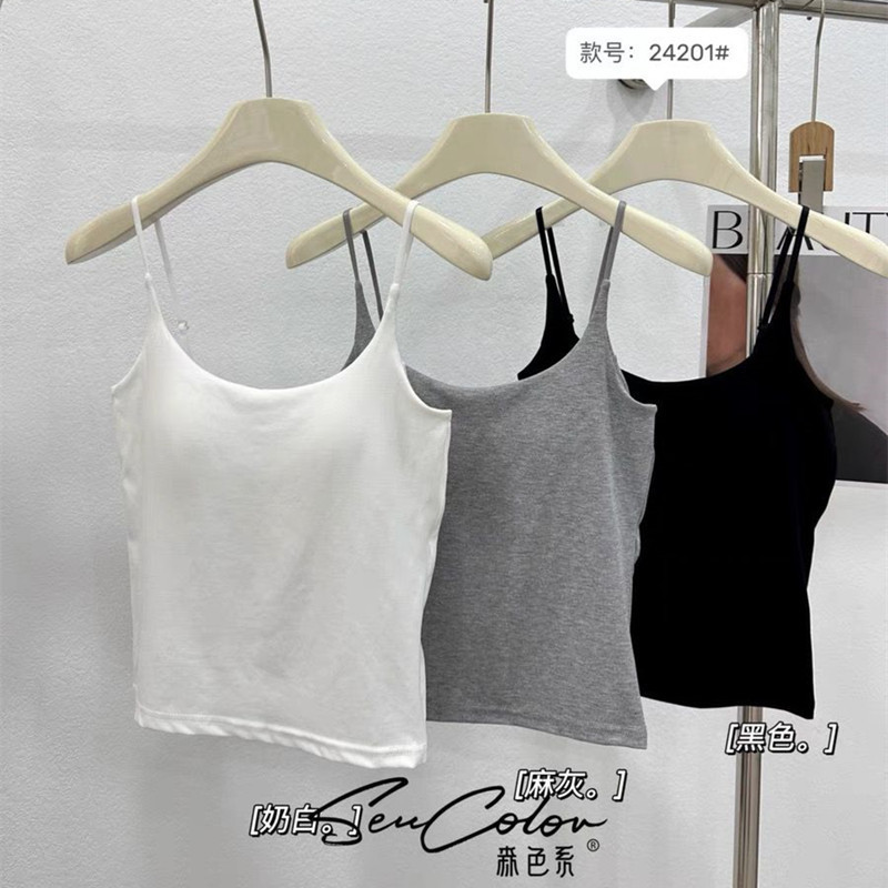 2024春夏純色カジュアル小さいストラップのベストの底のシャツの中で大きいサイズの丸首を掛けてセクシーな小さいストラップの女性を合わせます。