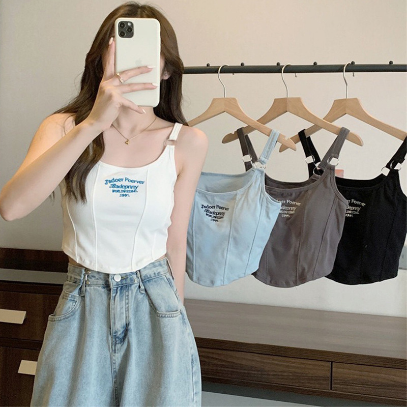 新商品の純欲風の短いタイプの袖なしの胸のパッド付きのキャミソールの女性は身を修めるギャルのネットの赤いアルファベットの上着を着て潮が満ちています。