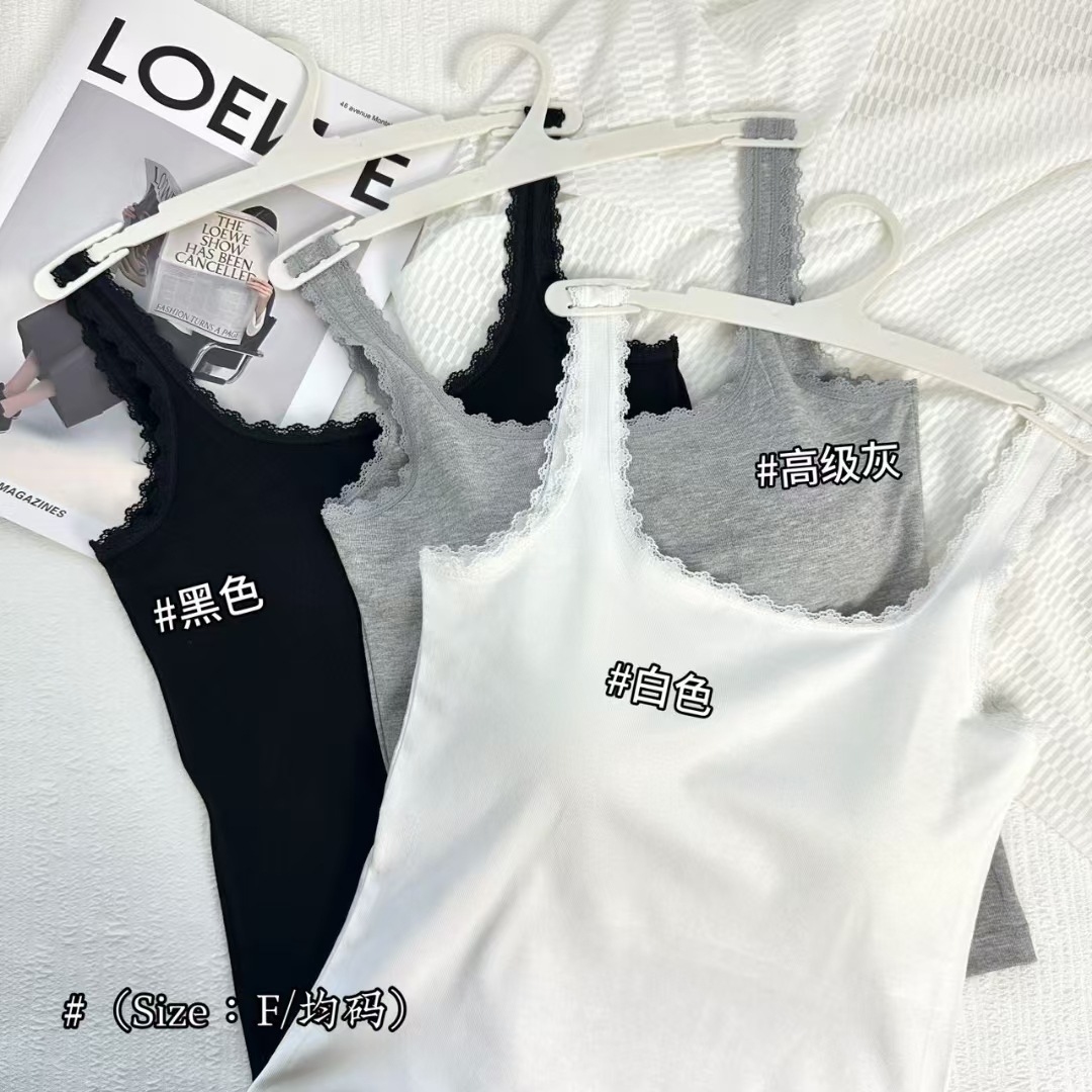 新商品の蝶結びのレースの縁には、胸パッド付きのキャミソールがあります。
