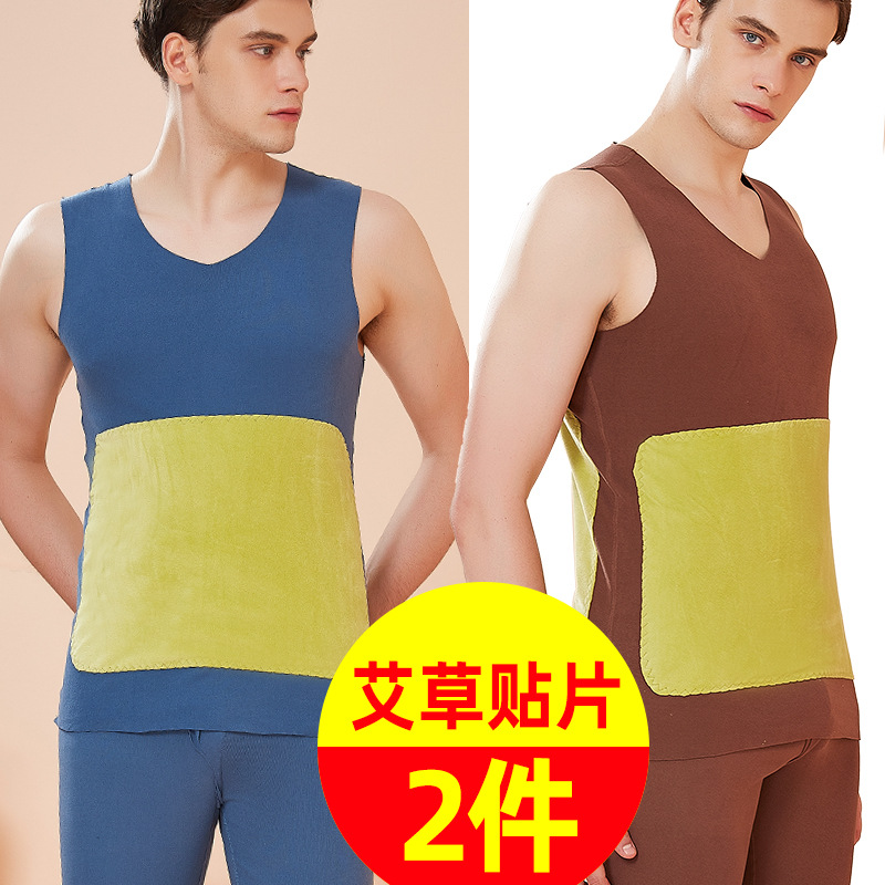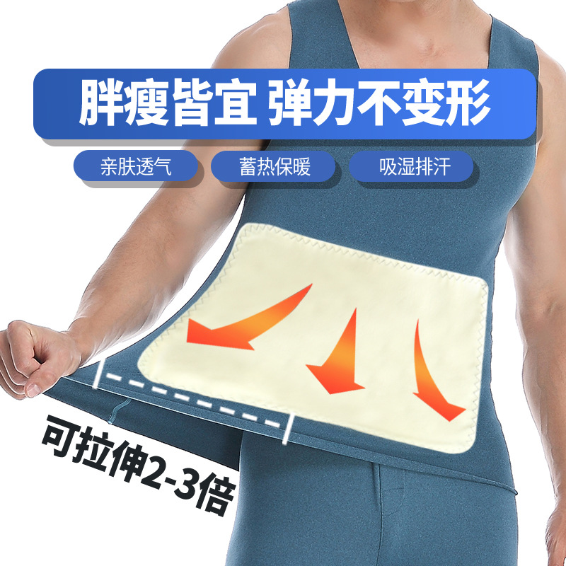 男性の無痕保温ベストは冬にベルベットと厚徳パイルが発熱した肩のシルクの中に袖のない下着を着ている