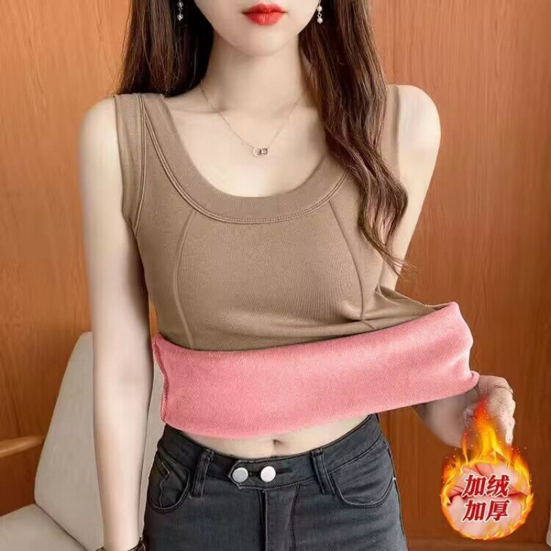保温下着冬にベルベットを厚くして細い肩にストラップをつけて保温する学生防寒下着の蓄熱内にシャツをかける