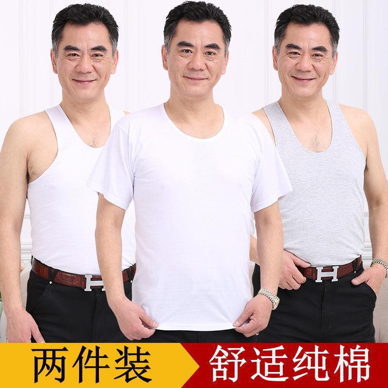 中高年ベスト男性老人シャツ純綿夏の中に丸襟の大きいサイズのゆったりした綿シャツの薄いお父さんを着ます。