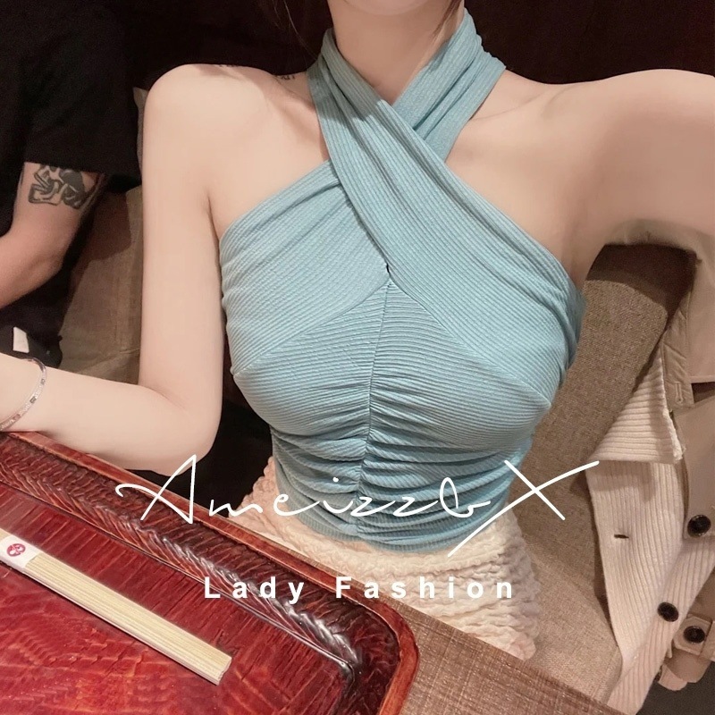 セクシークロス首ストラップベスト女性2023春夏新作純欲斬り男修身痩せしわショートコート