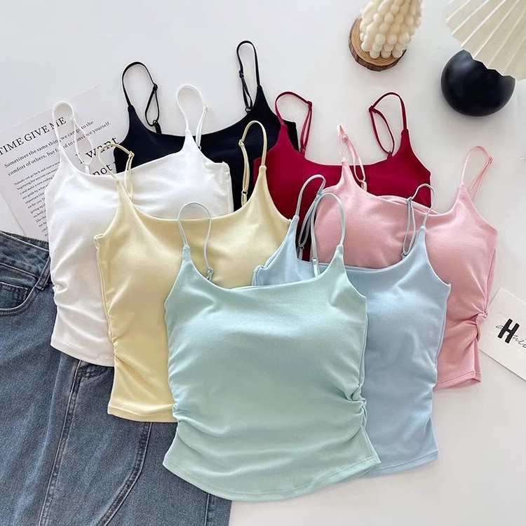 夏の新型ナイロンカジュアルキャミソールセットスポンジクッションキャミソール女性用キャミソールの産地商品の卸売り