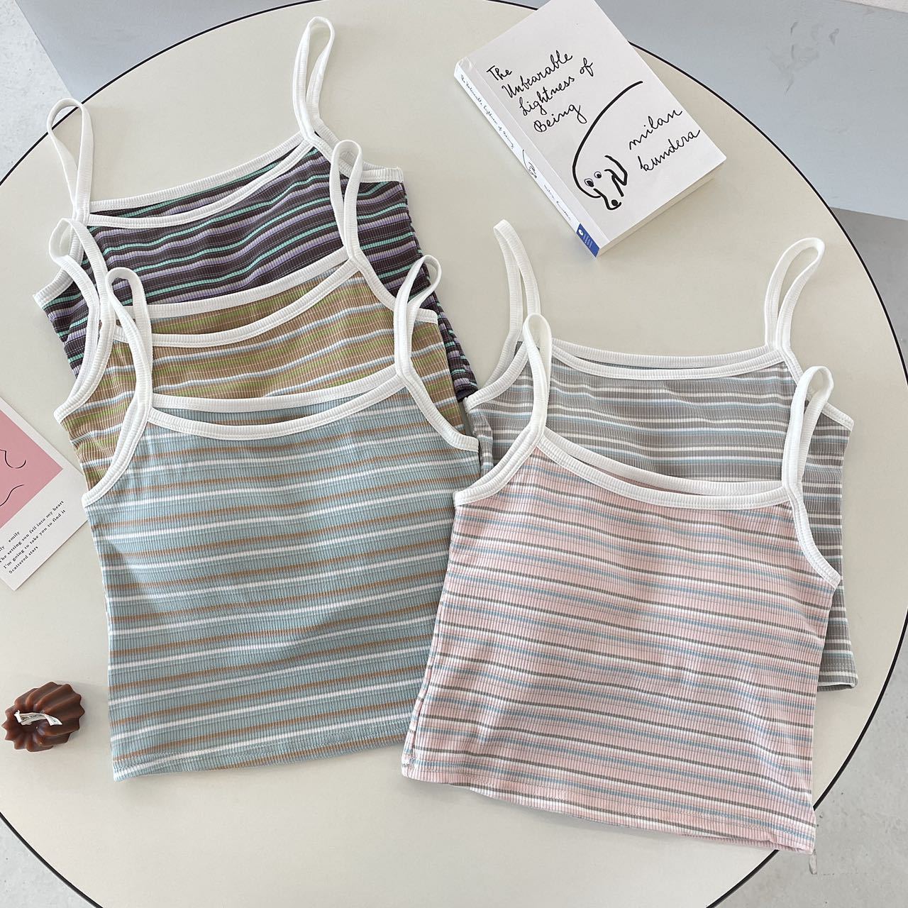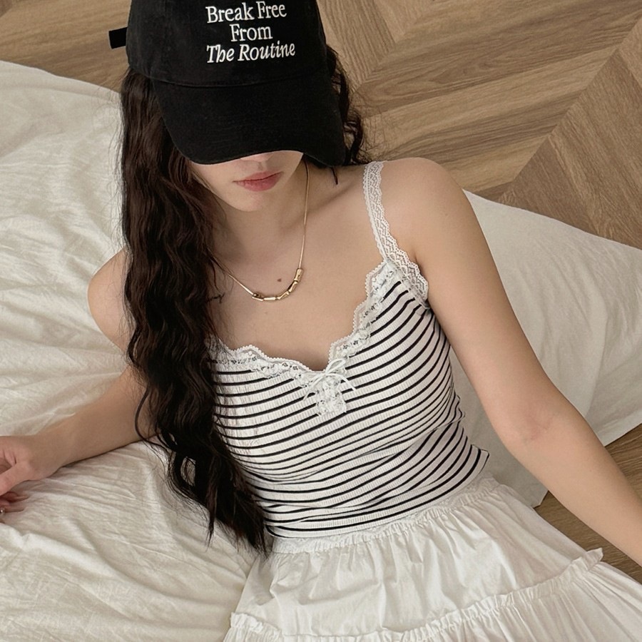 ストライプミックスカラーキャミソールレディースアウターとインナーオールインワンカップホットガールビューティーバックピュアデザイアトップセクシーラップ胸下着