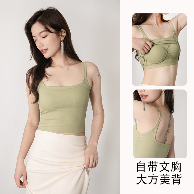 メーカー卸売パッド入りキャミソール女性のモーダルブラジャーオールインワンホームヨガベースファッショナブルで多用途