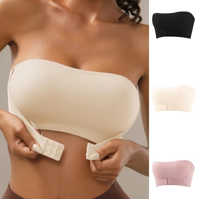 クロスボーダーヨーロッパとアメリカのTEMUストラップレスフロントボタン下着プッシュアップ胸ラップブラジャー女性用シームレスワイヤーフリーブラジャー