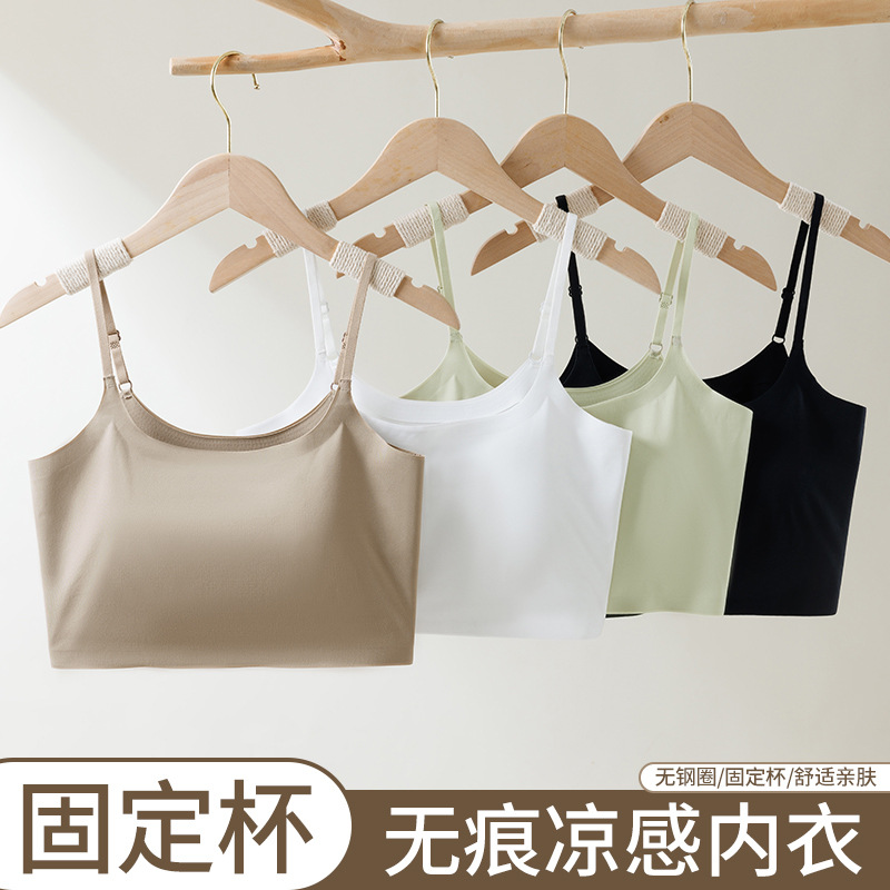 氷糸ストラップのベストの女性は胸のパッドを持って大きいサイズの夏のブラジャーの一体の短いタイプの下着の袖なしの上着の2024新型をプラスします。
