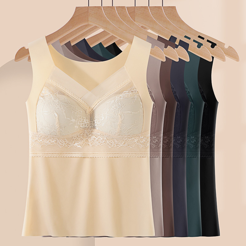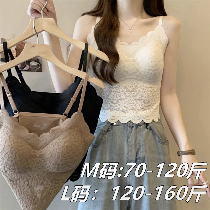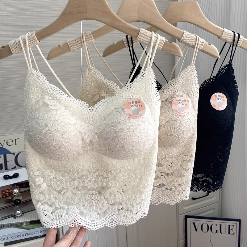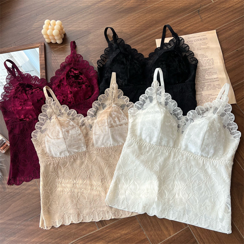 新作フレンチスタイル秋冬レース金糸ベルベットキャミソールインナーブラ付き美背ベストブラトップセクシー